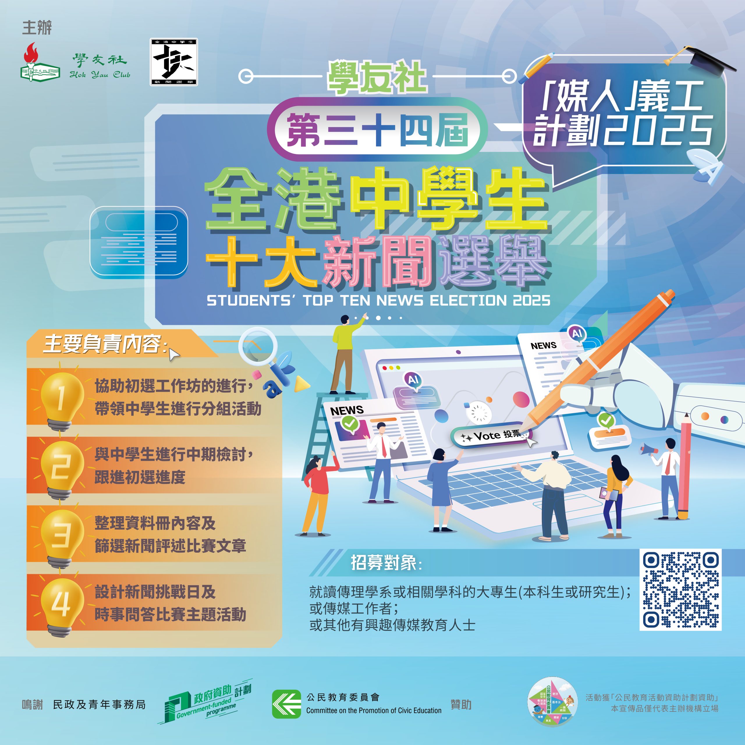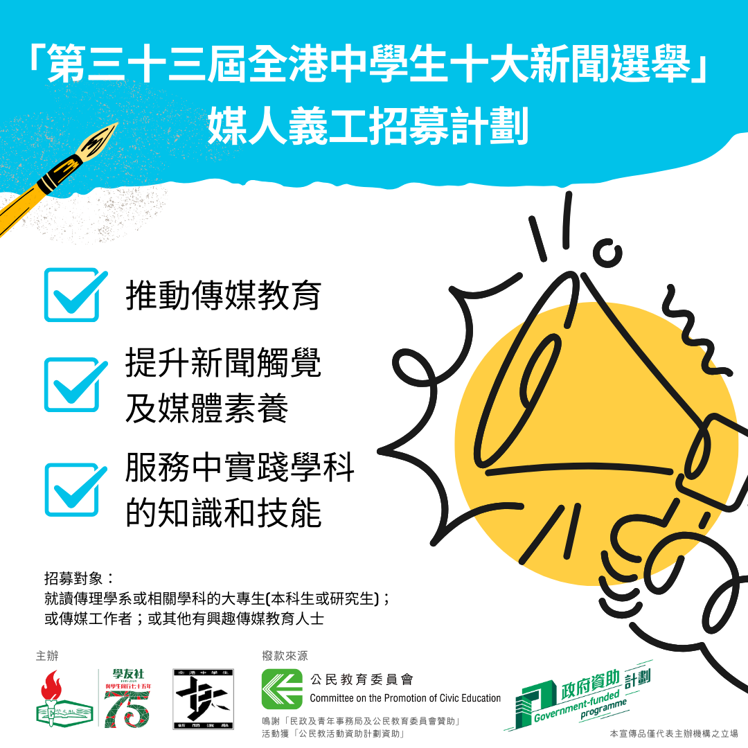 📰 招募「媒人」義工|第三十四屆全港中學生十大新聞選舉 🌟